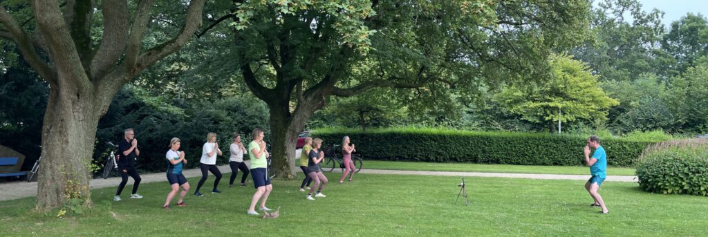 In the summer, classes take place in the park. These one-hour sessions are held without yoga mats. It’s helpful if you have kung fu shoes, but of course it’s not required. Being outdoors can make us more easily distracted, but we still aim to connect deeply with ourselves through Qi Gong and Tai Chi exercises. Just like on a mat, the movements are performed standing, guided by the hara and the heart, and in principle have the same effect as a yoga class on a mat in the studio.